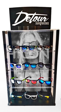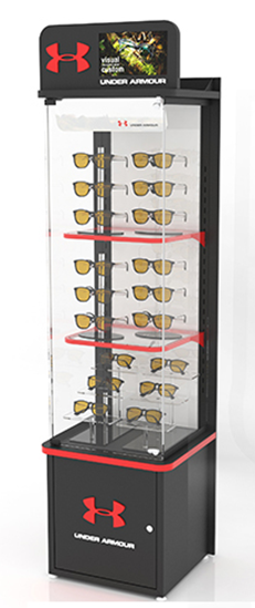 The LED-backlit display creates a premium look, making sunglasses and eyeglasses stand out.