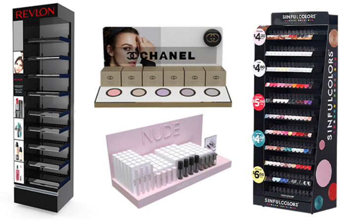 Example: A cosmetics brand could use glossy finishes and interactive mirrors to stand out in a beauty aisle.
